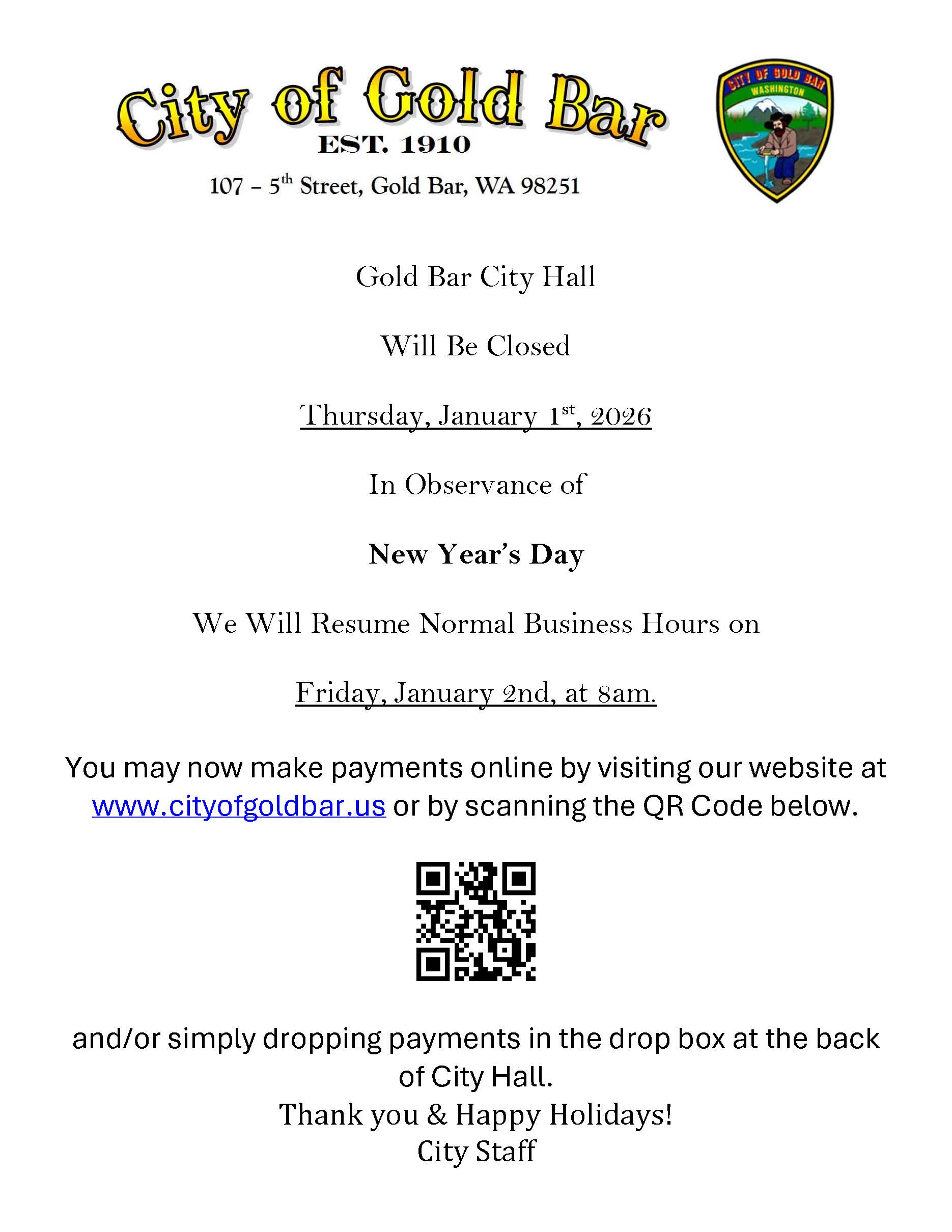 City Hall Closed On Thursday, January 1st, 2026, in Observation of New Year’s Day! Posted: December 31st, 2025